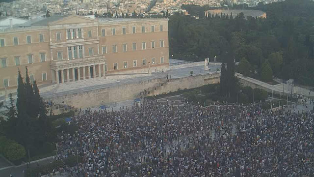 «Μένουμε Ευρώπη» ήταν το σύνθημα της μεγάλης συγκέντρωσης στο Σύνταγμα. ΦΩΤΌ